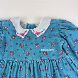 OSHKOSH B'GOSH Corduroy Long Sleeve Dress VTG 90s Floral Blue Kids Youth Girl 6