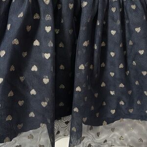 OSHKOSH B'GOSH Denim Overall Jumper Dress Tulle Skirt Silver Hearts 3T Valentine