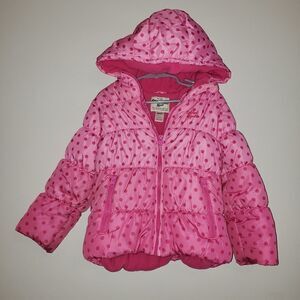 OSHKOSH B'GOSH PINK POLKADOT PUFFER JACKET WITH HOOD SIZE 5/6