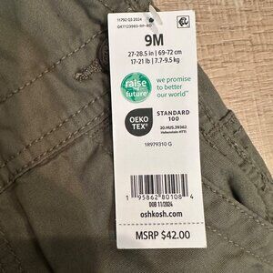 This OSHKOSH boys outfit set includes a green overall and long sleeve shirt, perfect for a 9-month-old baby. The set features airplanws design, making it both stylish and fun for little boys. The 2-piece outfit is easy to put on and comfortable for everyday wear, making it a great addition to any little boy's wardrobe.