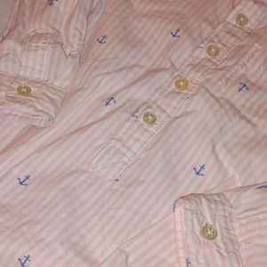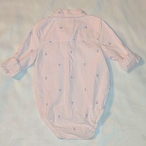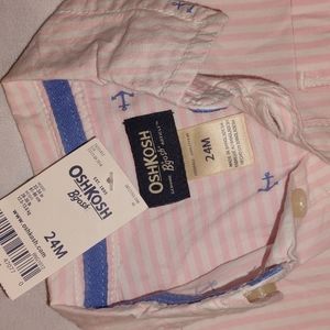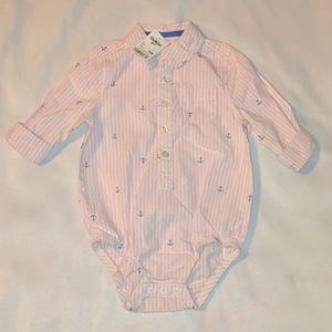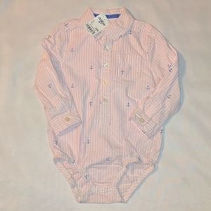 OSHKOSH Pink Striped Anchor Button Up Onesie NWT