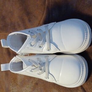 WHITE BOOT SHOES, AMAZON IN GREAT CONDITION, SOLES ARE DIRTY, TRIED CLEAN THEN BUT IT WOULDN'T COME OFF.