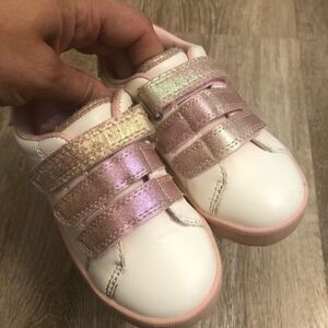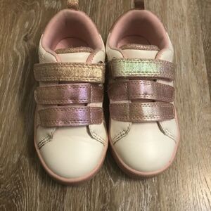 OSHKOSH toddler girl White Velcro Strap glitter pink white Sneaker 8M
