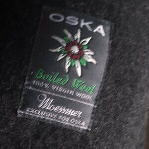 OSKA BOILED Wool Coat Womens Size 12 / 14 Gray Coat 3/4 Length