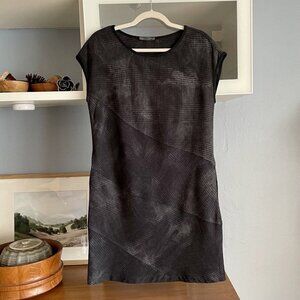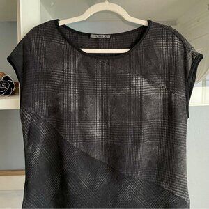 OSKA Black Grey Houndstooth Plaid Lagenlook Shift Dress Pockets Wool Blend
