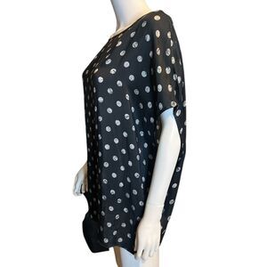 OSKA Blouse Top 2 US 8-10 Black White Polka Dot Oversized Tunic Cupro Lagenlook