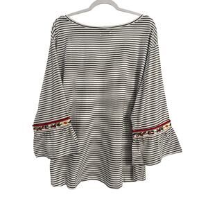 OSO Casuals NWOT Coastal Nautical Stripe Boho Embroidered Floral Bell Sleeve 3X