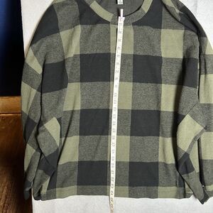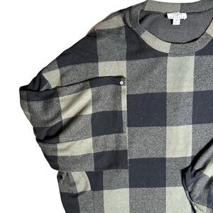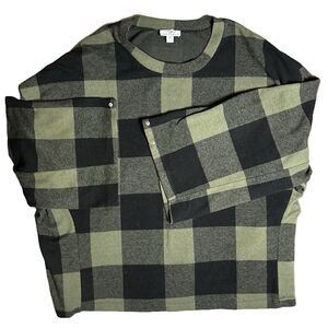 Stay cozy and stylish with this OSO Casuals women's knit sweater. The dark green and black check pattern make it a versatile addition to your wardrobe, perfect for casual occasions. The oversized design provides a comfortable fit, while the long sleeves and snap closure cuffs add a touch of elegance.