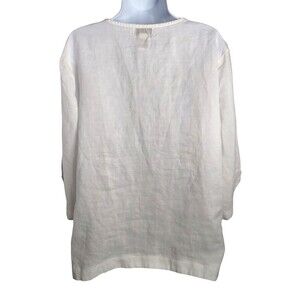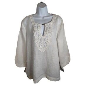 OSO Casuals XLarge Tunic Top White Linen Embellished Front Round neck 3/4 Sleeve