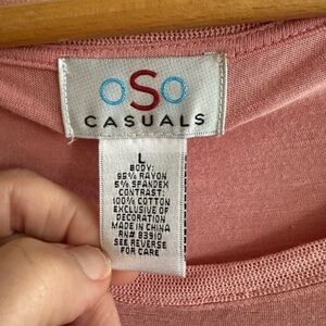 OSO casuals boho pink crochet flowy boho tunic short sleeve top size large