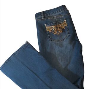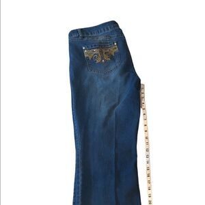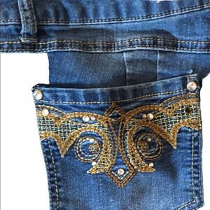 These jeans offer a great fit for someone who wears cowboy boots or other shoes as well. Again a southern twist with the detailing on the pockets. The seams on the bottom of the jeans need to be touched up. You can have them hemmed or you can do it yourself with seamstress glue