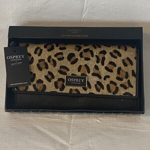 DETAILS: OSPREY LONDON JULIA LARGE MATINEE LEOPARD BLACK LEATHER WALLET New with box FEATURES: Leather and half calf hair on leopard print and black leather wallet. Elegant. MSRP is 95 pounds. Gorgeous!! Measurements are approximate. Length: 7 3/4 " Height: 4 1/4" Width: 1/2" Please note that product may slightly vary due to lighting or monitor settings. Always open to offers and Happy to answer any questions you have! FEEDBACK: I strive to earn positive five star feedback for all my items. If you feel I deserve anything less, please send me a message through the site prior to leaving anything less than a five star. I will do my best to fix the issue. Please keep in mind that you are purchasing pre-LOVED clothing, when applicable. Rarely, but it does happen, I will overlook a flaw. If so, PLEASE give me grace and contact me so that we may work out a solution.