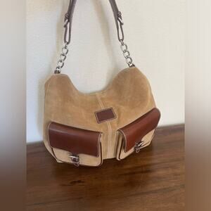 OSPREY LONDON The Vagabond Italian Suede/Leather Brown Bag Boho Saddle