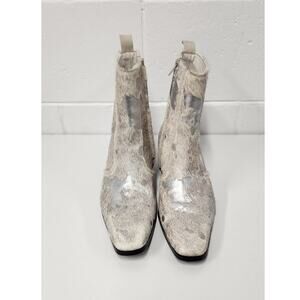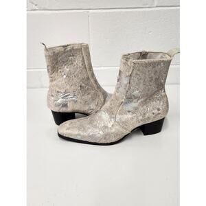 OSSTONE Men's Chelsea Leather Pony Hair Leopard Ankle Boots, Size 7.5, In Silver