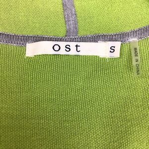 OST Knit Gray Green Open Front Long Oversize Sweater Vest Women's Size S Small