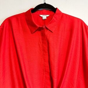 O'STIN Twist Front Linen Blend Oversized Loose Fit Red Blouse Top Size S/M