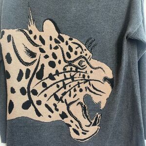 OST Wool Blend Leopard Print Jewel Studded Grey Oversized Sweater - Medium