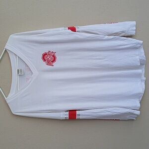 OSU Ohio State Buckeyes Sequin Spellout White V Neck Long Sleeve Tee Small