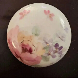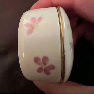 Vintage OTAGIRI 2 piece trinket container in EXCELLENT condition. No chips or cracks. Pretty floral design in pink and purple with gold trim. Made in Japan.
