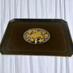 OTAGIRI Japan Vintage Lacquerware Serving Tray Quail Bird Black Brown Gold