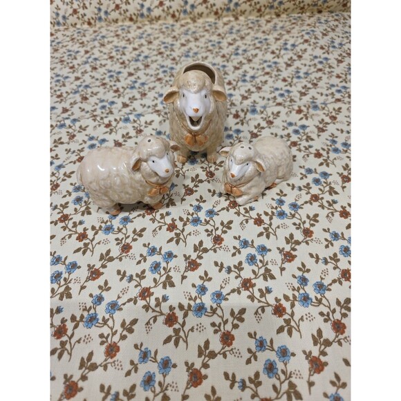 Keywords: ceramic sheep, salt shaker, pepper shaker, planter pot, farmhouse decor, kitchen accessories, table centerpiece, cute animal figurine, vintage kitchenware, collectible shakers, cottagecore, whimsical decor