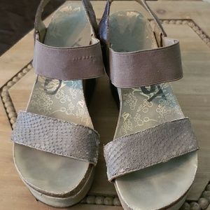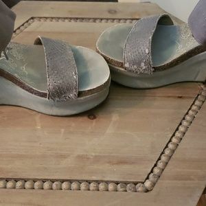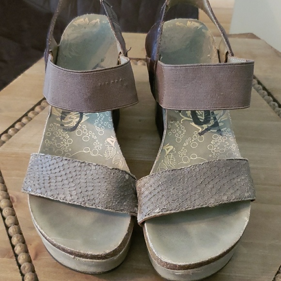 OTBT is a shoe that is open toe, memory foam padded sock and is cork supported. Small wear inside. Check pic