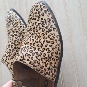 OTBT Coyote Animal Print Hair Hide Leather D’Orsay Slip On Boho Loafers Booties