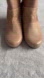 Good used condition. Dharma Wedge Bootie by OTBT in Pecan, a tan, light brown and cream shade. Retro 70s bohemian aesthetic, a versatile style that can be dressed up or worn casually. Leather ankle boot with stacked wedge heel and round toe. Pieced leather upper with reptile embossing, textured grain and smooth leather patchwork design and wood-like heel, see video. Camo-printed fabric lining, see video. Note: light wear throughout, with streetwear to bottom sole, minor piling at lining and moderate scuffing to upper, see photos. Size 9.5, see photos for measurements.