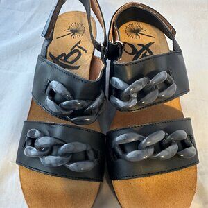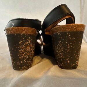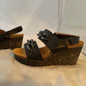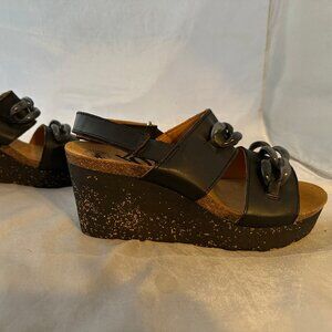 OTBT Leather Fair Isle Wedge Sandals Black Leather Women Size 8.5 NIB