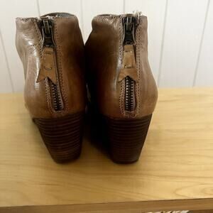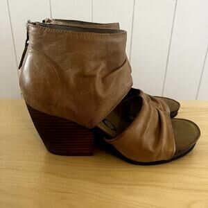 OTBT Off the Beaten Track Patchouli in Distressed Tan Leather Heeled Sandals SZ 9