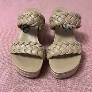 OTBT Size 8.5 M Tan Embossed Braided Fluent Wedge Sandal Slip On Comfort Resort