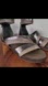 Sleek, contemporary silver and tan leather strapot sandals. Ankle strap with back zipper closure. casual and comfy
