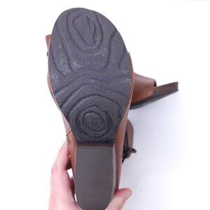 OTBT Vagabond Chestnut Brown Leather Open Toe Booties Wrap Ankle Detail 8