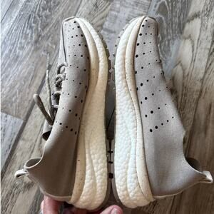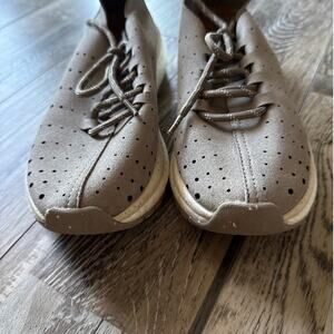 OTBT Womens Alstead Comfort Sneaker 6 Perforated Lug Rubber Outsole Gray Beige