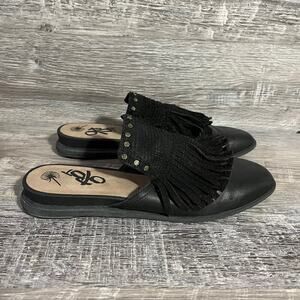 OTBT Womens Black Gleam Leather Mules Loafer Slides Size 8.5M