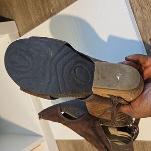 OTBT free spirit brown open toe heeled Fringe booties Boho Bohemian Western