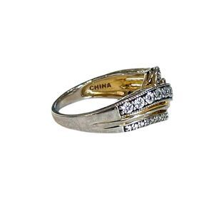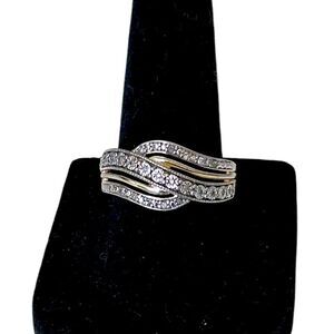 Features three rows of tiny diamonds set in gold plated sterling silver. Ring is in excellent condition, fully hallmarked and will arrive gift boxed.