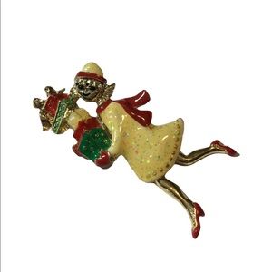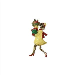 OTC Vintage Brooch pin Lady with packages & movable legs holding gifts