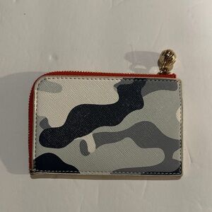 EUC Stylish camouflage card holder with a vibrant red zipper. Perfect for organizing your essentials.