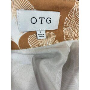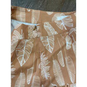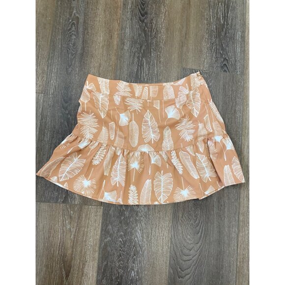 OTG Ruffled Tan and White Leaf Mini Skirt Women’s Size L Side Zip.