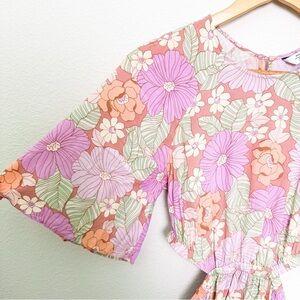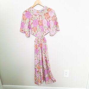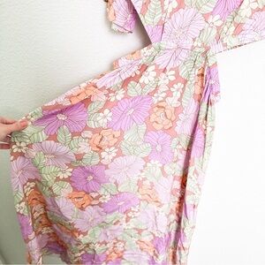 & OTHER STORIES Cut-Out Waist Pink Floral Flutter Midi Dress size 2