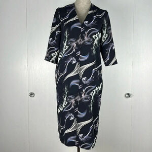 & OTHER STORIES Fumé Print Dress Elbow Length Sleeve V-Neck Black Size 4