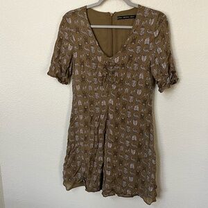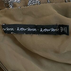 & OTHER STORIES | Khaki Olive Tiger Printed Flounce Mini Ruched Dress | Size 6