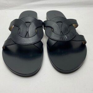 Step into effortless elegance with these & OTHER STORIES black leather sandals. Designed with a sleek circular cutout and minimalist straps, they offer both comfort and sophistication—perfect for summer days or casual evenings. Made with genuine leather, they're a timeless staple for any wardrobe.