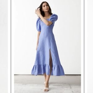 & OTHER STORIES Linen Puff Sleeve Midi Dress- 4