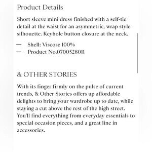 & OTHER STORIES NWOT Knot Detail Mini Dress
