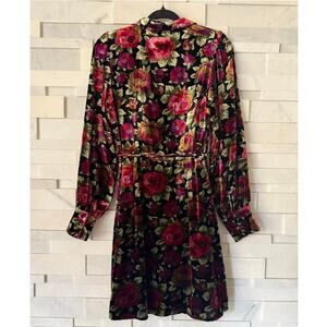 & OTHER STORIES NWT Velvet Bishop Sleeve Plunge Neck Floral Wrap Dress 6