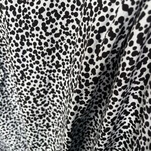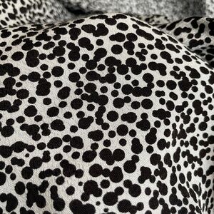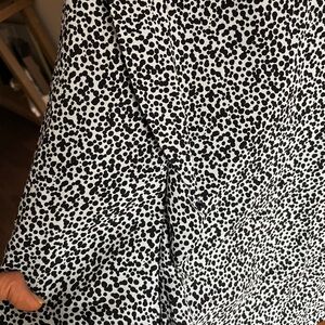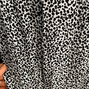 Flounce at front. Light sky blue with black patterned dots. Lined from wait down. 70 inches long approx.