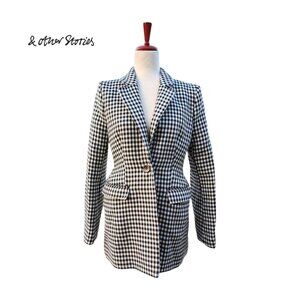 & OTHER STORIES Single-Breasted Fitted Mid-Length Tailored Gingham Blazer Size 6