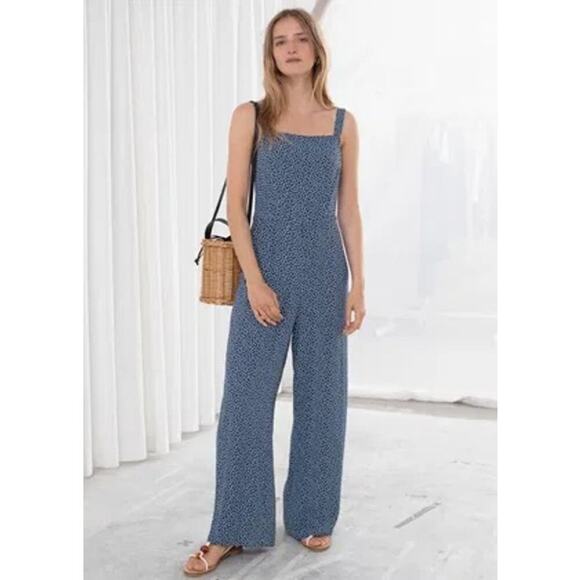 & OTHER STORIES Women's Blue & White Floral Print Relaxed Jumpsuit Size 8